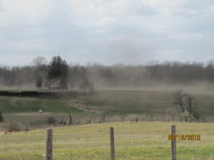 Wind erosion from tilled fields in Bruce Cty during the very windy day of april 16, 2012 without any tillage operations ongoing as the picture being taken shown the issue with increased tillage occurring in much of Ontario.