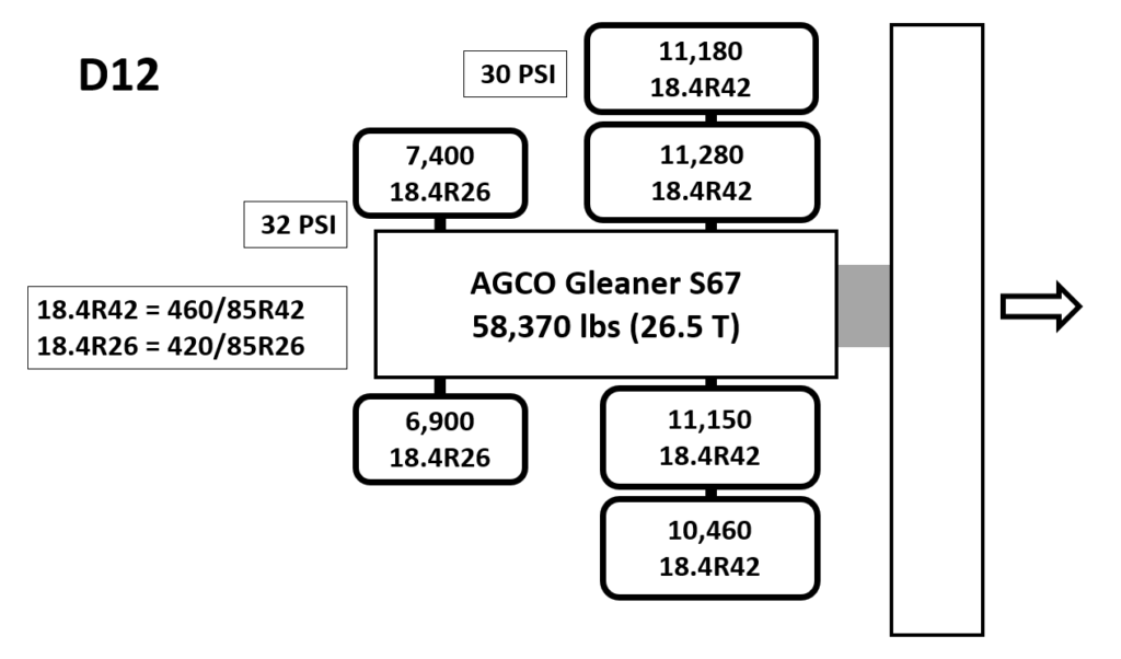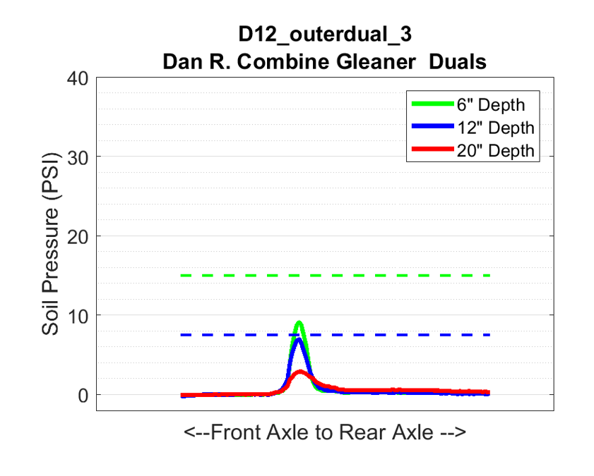 Unit D12: AGCO Gleaner S67 Dualed Combine w 18.4R42 Posted on January 12, 2019 (January 12, 2022) by Alex Barrie in Compaction Test Results Datasheets Plot Comments This combine shows a similar trend to most combinesHeavy weight will tend to show more stress at depthDual wheels at 30psi is on the high end of a combine setup.
