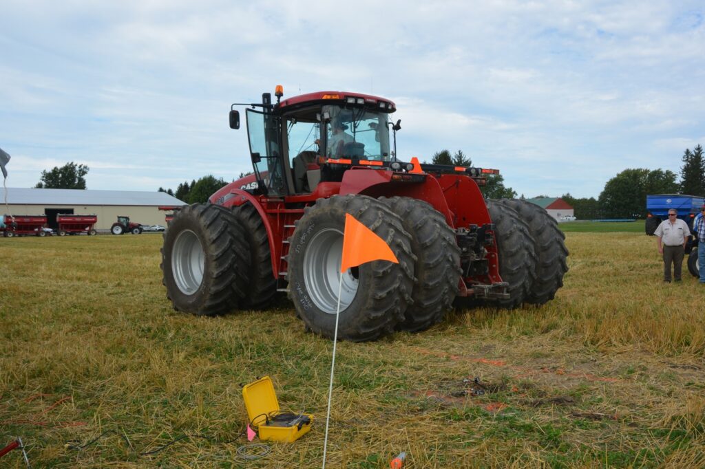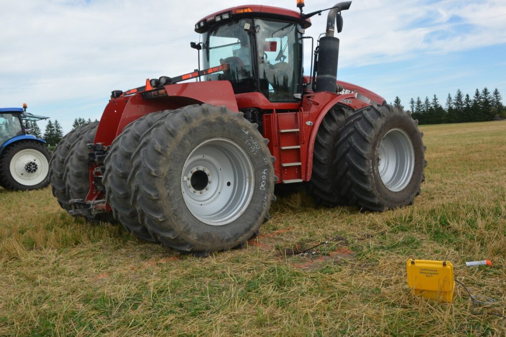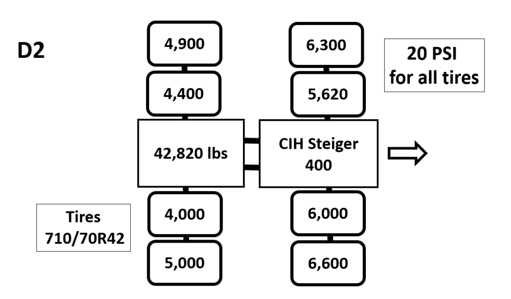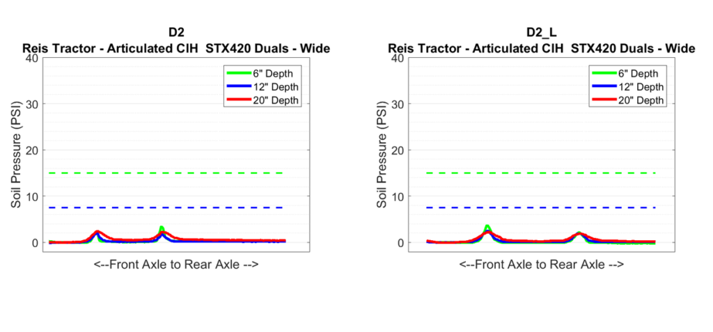 Unit D2: CaseIH Steiger 400HD Dualed Articulated Tractor w710s Posted on January 10, 2019 (January 12, 2022) by Alex Barrie in Compaction Test Results Datasheets Plot Comments D2_3, D2_L_3 This Unit was tested at the _3 installation.This is a wheel tractor, comparable stress at depth effect compared to D1 as even accounting for lighter axle weight.
