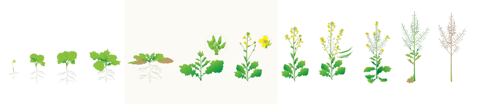 Vegetative/Reproductive Overwintering Growth resumes when average temperatures reach 5°C but will be slow until it is consistently warm. Leaves may have rotted off or be discoloured but the centre of the rosette should be green. Determine the population of healthy plants. 5 plants/ft2 or more is ideal. 3-4 plants/ft2 is acceptable. 1-2 plants/ft2 can be … Continue reading Growing Winter Canola in Ontario — Spring: Assess Plant Health and Fertilize […]