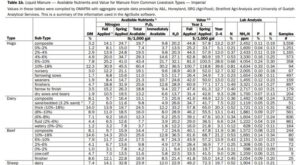 Ontario labs accredited for OMAFA soil testing use similar methodology and report results with “as-is” or “as-applied” percentages or ppm for macro and micronutrients. Table 1 provides details for interpreting the results of a manure analysis and calculations used to determine available nutrients. OMAFA’s AgriSuite nutrient management software tools includes an organic amendment calculator that … Continue reading Interpreting a Detailed Manure Analysis […]
