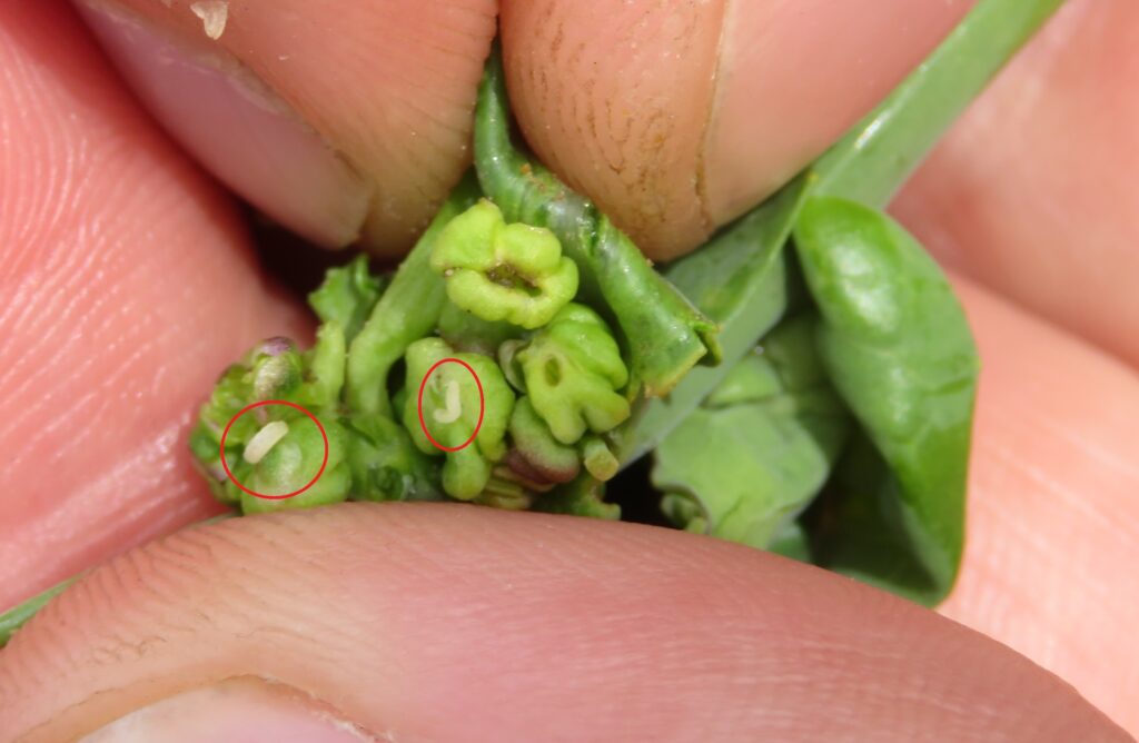 Figure 2. Swede midge larvae are very tiny and hide within tissue at growing points.