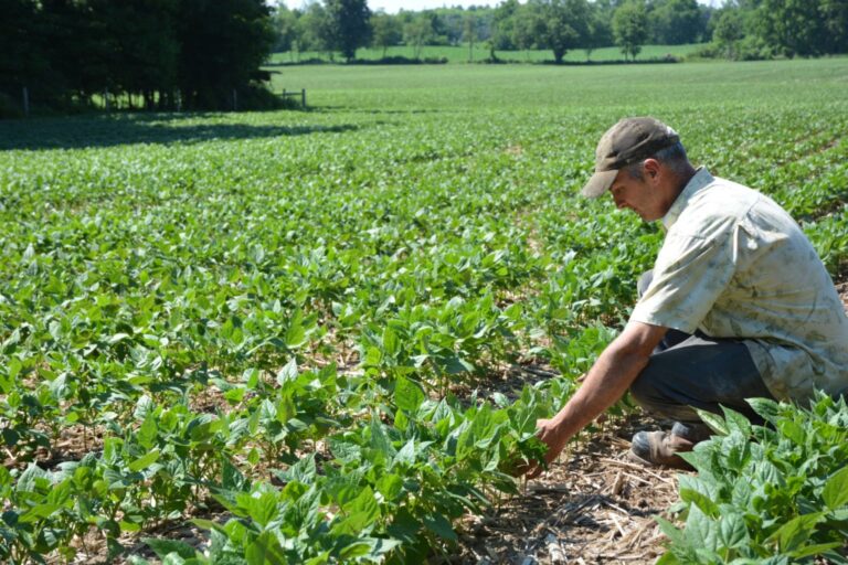 Early recognition and action on identified problems will minimize their economic impact on a crop. Under each commodity Chapter within this publication, crop scouting calendars illustrate the timing associated with the common crop pests found in Ontario. Monitor fields regularly, since conditions can change rapidly throughout the season. As optimum plant populations are critical for achieving maximum economic yields, perform crop stand evaluations within 1–2 weeks of plant emergence, and continue on a weekly basis. When approaching a control threshold, such as the application of a post-emergent herbicide or an insecticide, fields may require daily scouting to correctly time the intervention. Later in the season, bi-weekly scouting is normally sufficient. Some insects and diseases occur later in the season and may approach control thresholds in a matter of days. Examples of such pests include armyworm and soybean aphids. If field and weather conditions favour these later-season pests, scout weekly. Pre-harvest notes are often useful to estimate yield and to start the planning process for the next cropping year. Where weed escapes have obviously survived herbicide treatment, and where application and product issues have been ruled out, collect weed seed samples for herbicide-resistance testing before harvest. Samples can be submitted to the Weeds Lab, Crop Science Building, University of Guelph, 50 Stone Rd. E., Guelph, ON N1G 2W1.